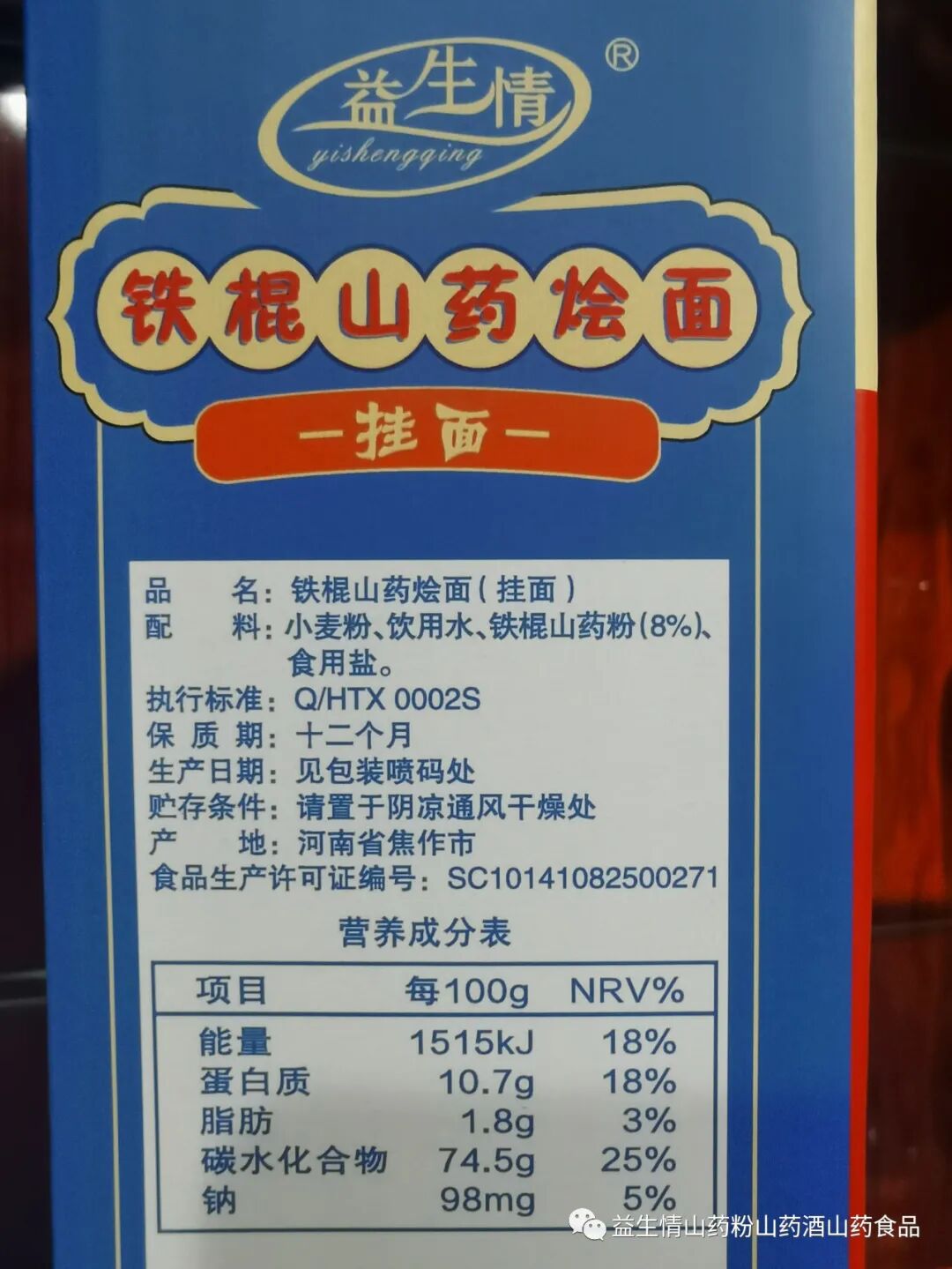 看看咱们益生情铁棍山药烩面配料表一目了然: